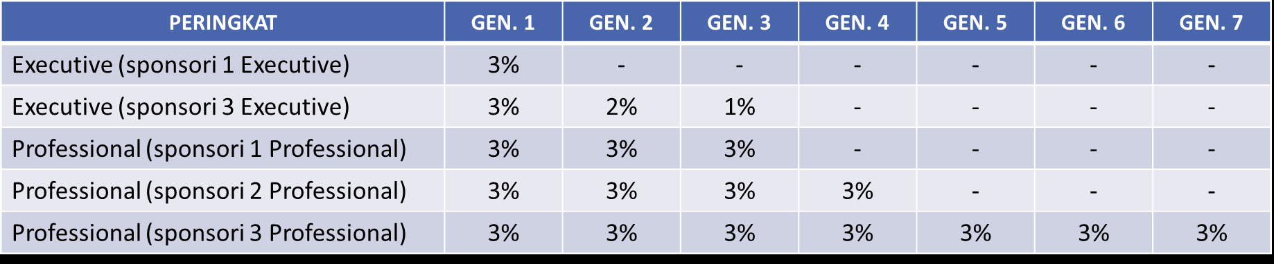 Commission (hanya dari omzet reguler jaringannya).
